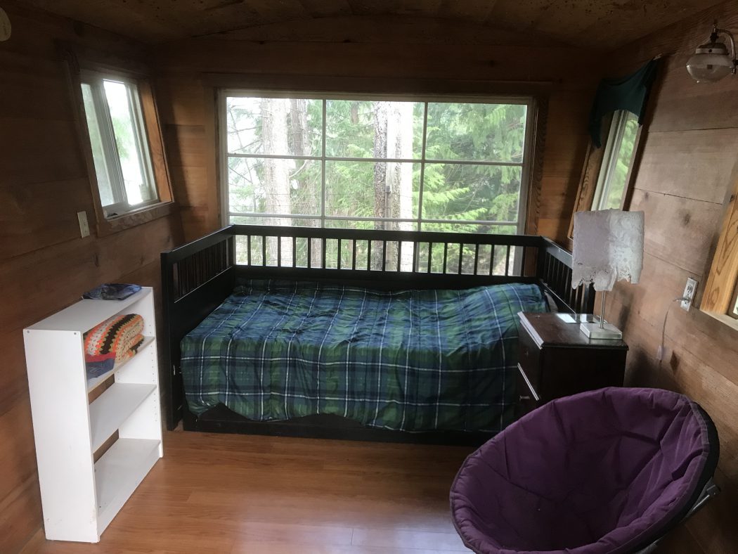 The caravan is a sweet and charming tiny space with a small porch, wood stove, and a comfy single bed. This building is in “Wwoofville”, which is fairly close to the farmhouse, and has a lovely view of the lake. The composting toilet and wash up sink are in a separate building close by.